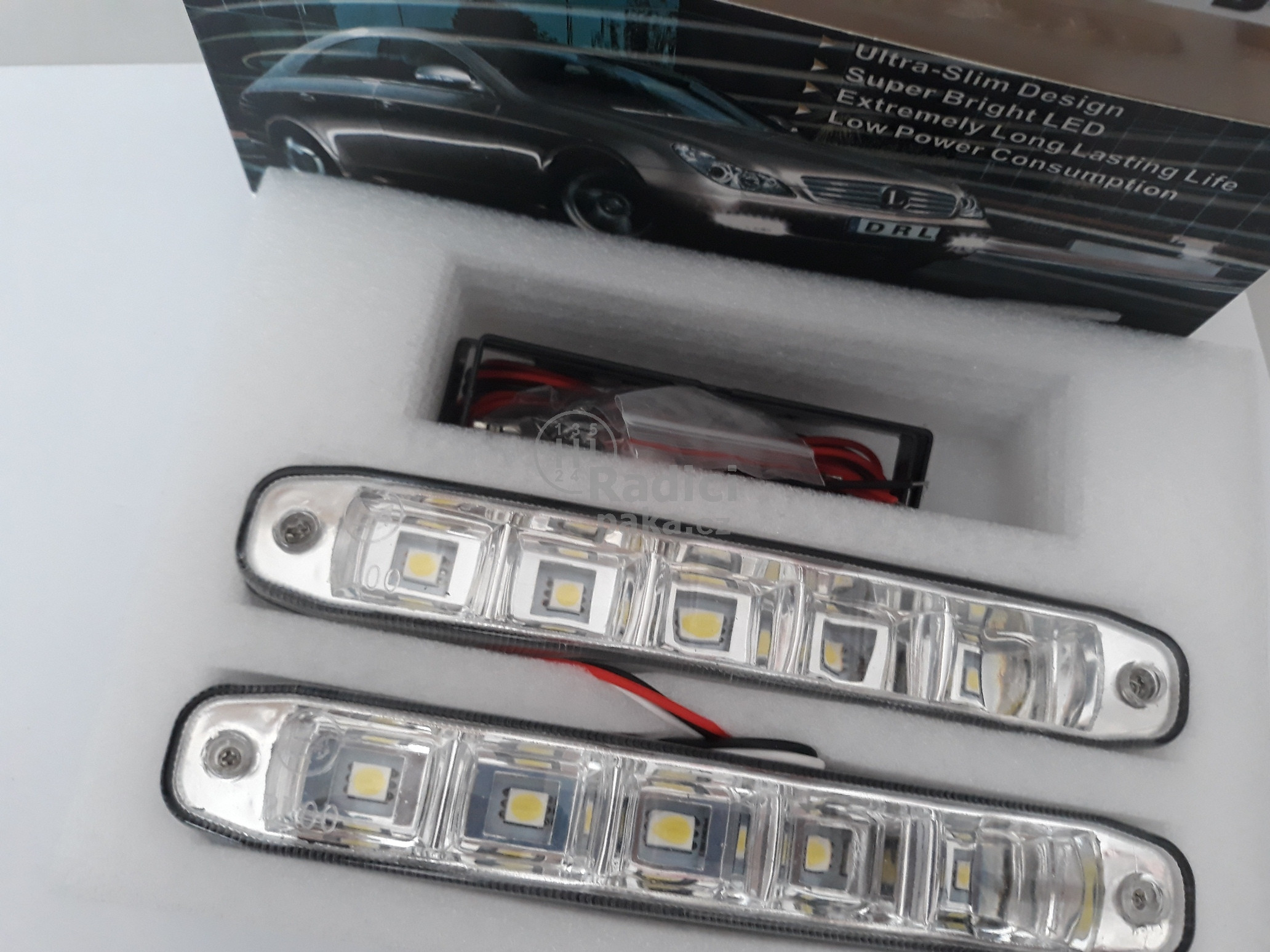 Univerzální LED denní osvětlení. Světla pro všechny modely vozidel. Kulaté. Produkt vysoké kvality, nový, nerozbalený, nepoužitý. Balení Obsahuje kompletní sadu 2ks světel. Jednoduchá montáž. Vhodné pro montáž v nárazníku Univerzální 2x5 SMD 5050. Rozměry: 160x26x42mm (délka, výška, hloubka) Barva světla: Studená bílá výkon: 0,24W/dioda svítivost: 420lm napětí: 12V životnost: min 50 000 hodin certifikace EU: ANO, E4 RL. - Další informace